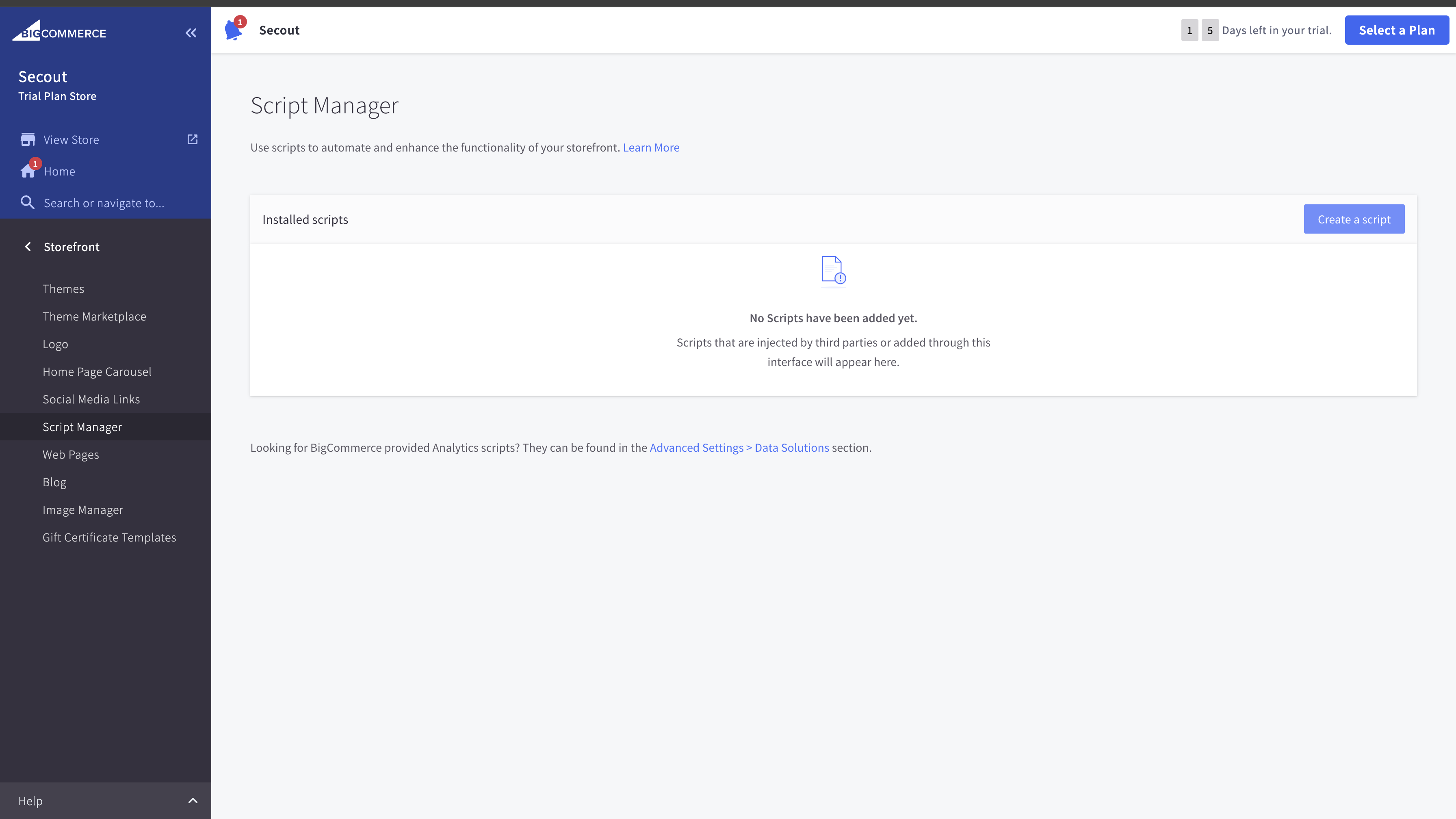 - Go to Storefront > Script Manager.