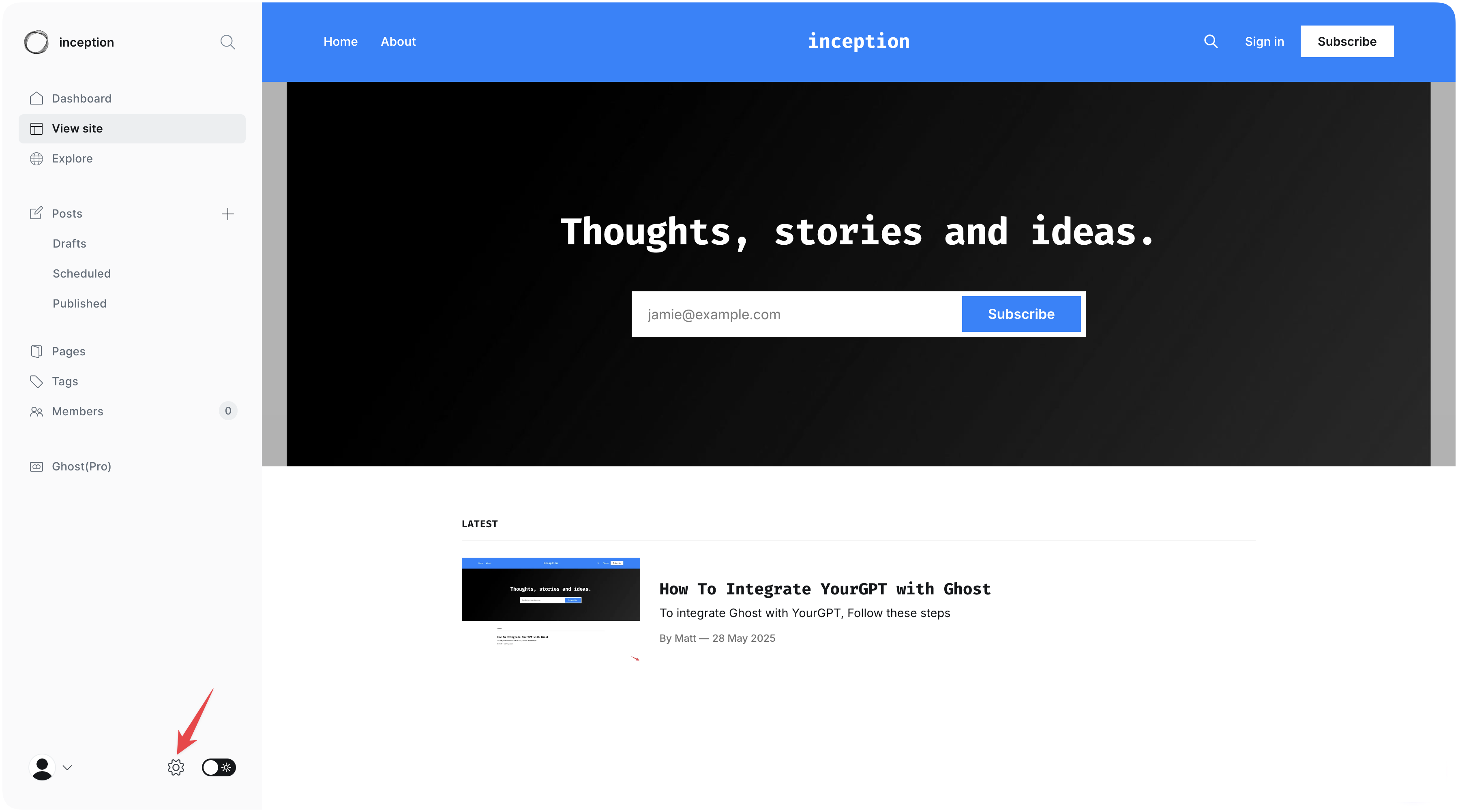 - Once logged in, you'll see your Ghost admin interface with the sidebar navigation
